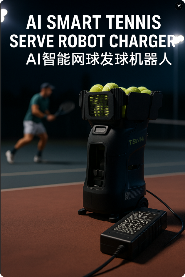 AI智能網(wǎng)球發(fā)球機(jī);自動發(fā)球器;網(wǎng)球機(jī)器人;智能發(fā)球機(jī)器人;網(wǎng)球AI智能發(fā)球機(jī)器人充電器,電源適配器